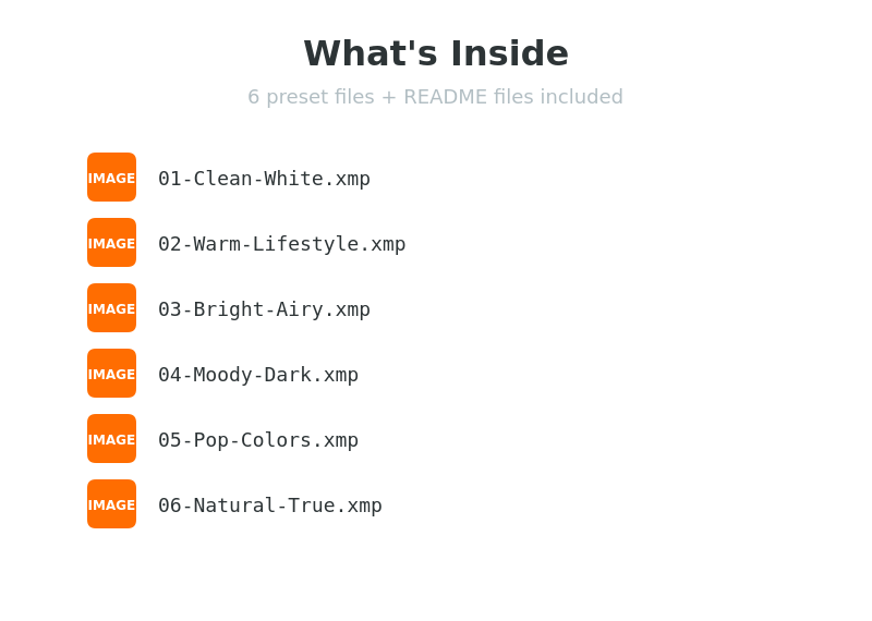 - 6 .xmp preset files (universal format)