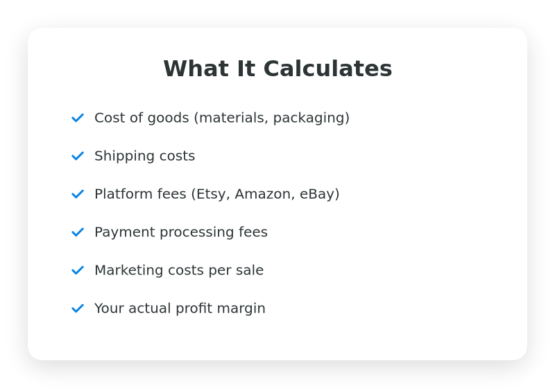 The truth: After platform fees, shipping, packaging, and payment processing, that $30 sale might only put $5 in your pocket. Or worse β you might be LOSING money.